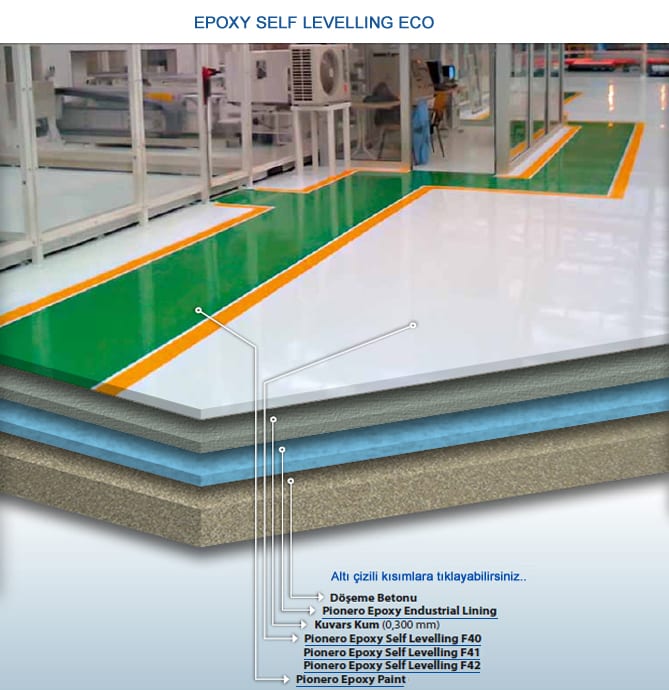 - Epoksi kaplama Self leveling ( Kendiliğinden yerleşen) malzemedir. Uygulaması kolaydır